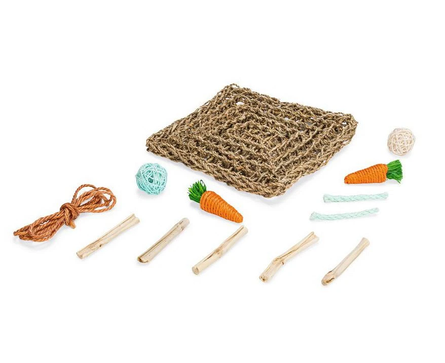 Met deze Nature Knaagdier Speelmat kan je jouw knaagdier of konijn voorzien in al zijn of haar speelbehoefte. Deze speelmat is gemaakt van natuurlijk materiaal. Hierdoor kan het geen kwaad wanneer jouw dier zijn tanden in het materiaal zet.