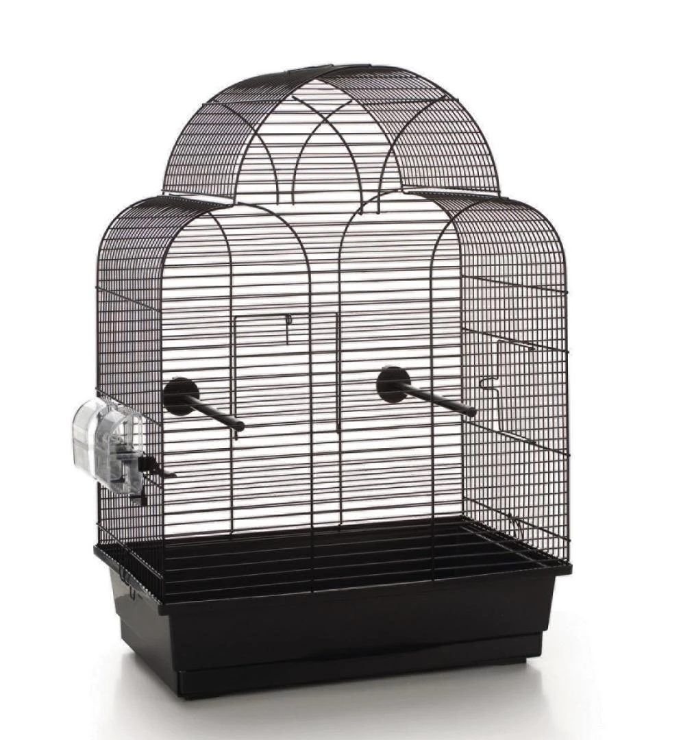 Vogelkooi Sonia is een leuke vormgegeven vogelkooi, welke makkelijk is schoon te maken door de uitschuifbare lade. Inclusief zitstokjes en drink en voederbakjes. Te combineren met de metalen vogelkooistandaard Bob 2. Kleur: zwart. 45 x 28 x 63 cm