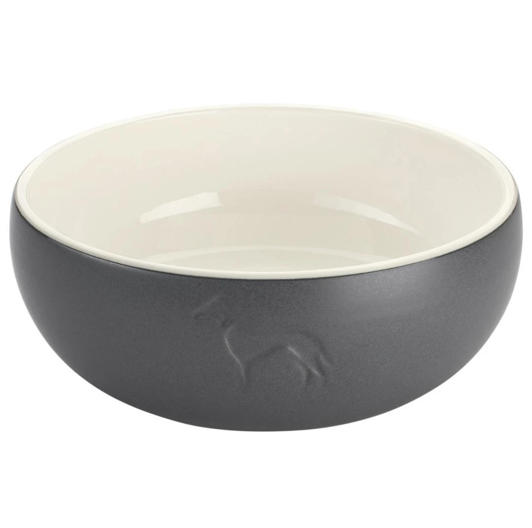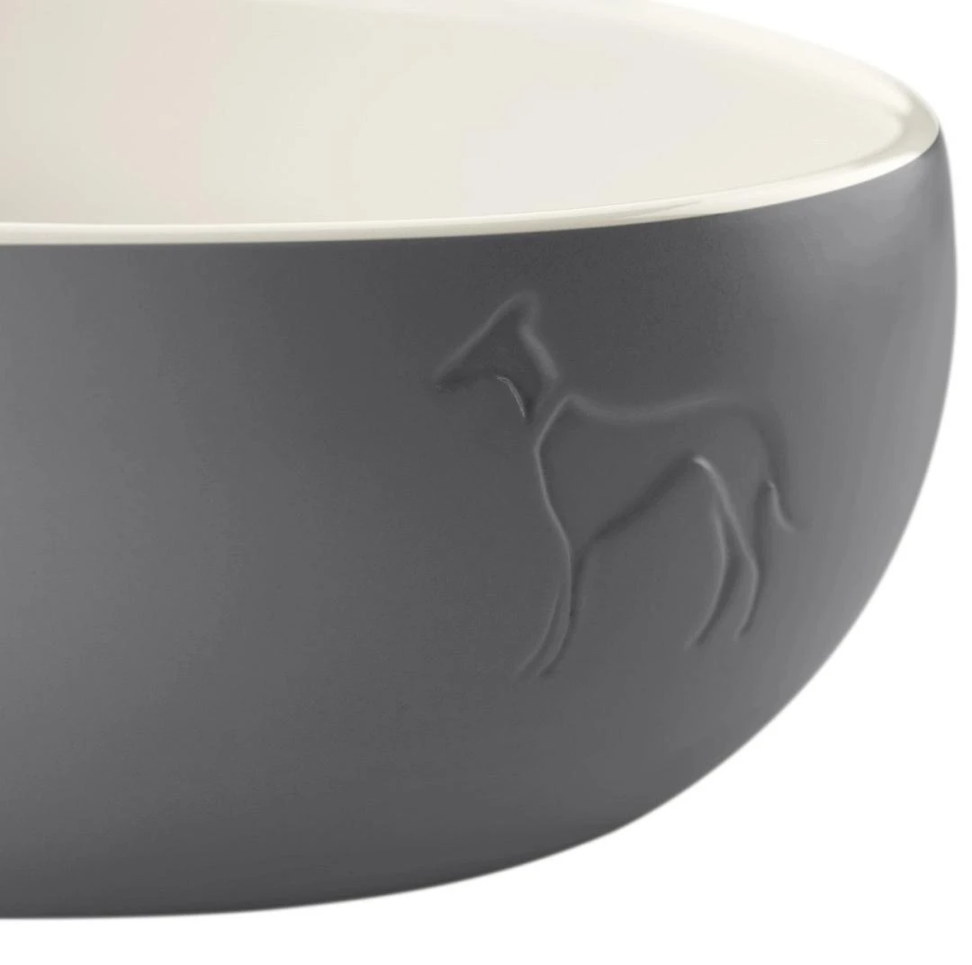 Hunter Voerbak Lund is een moderne, keramische voerbak met een gebosseleerd hondensilhouet op de voorkant. Dankzij de omringende siliconen rand aan de onderkant en het relatief hoge gewicht is de voerbak bijzonder veilig en wordt hij ook gemakkelijk geaccepteerd door gevoelige honden.