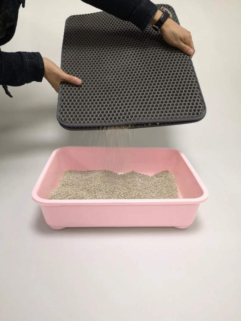 Het verzamelde gruis kan heel gemakkelijk leeggegoten worden in de vuilnisbak, of gewoon weer terug de kattenbak in. Door het klittenband zijn beide lagen heel eenvoudig los van elkaar te halen zodat de mat ook hygiënisch gereinigd kan worden met water en schoonmaakmiddel.