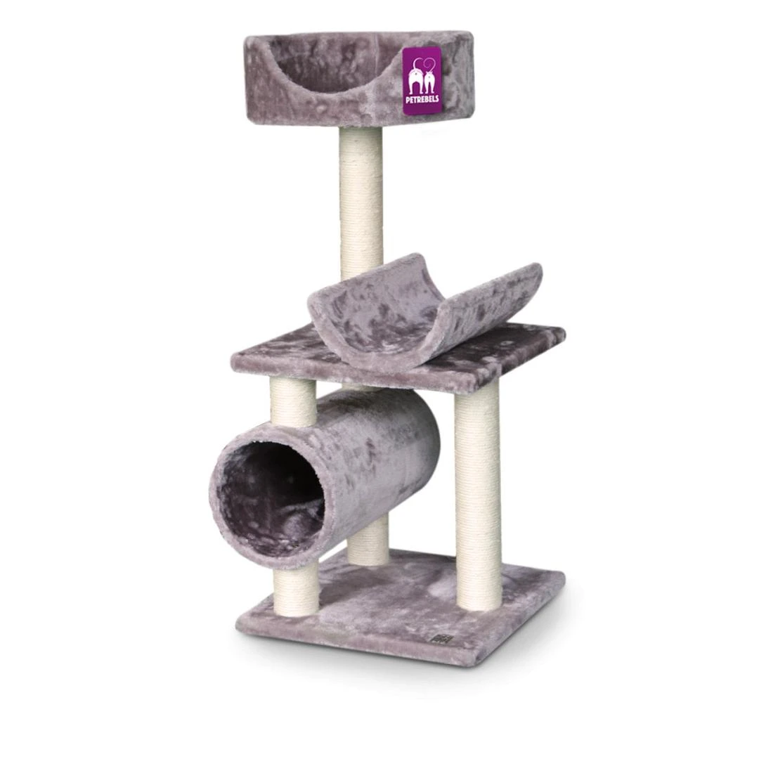 De Petrebels krabmeubel Little Rebels Portland 92 is een krabmeubel met een divan bovenin, een relax sofa halverwege en een speeltunnel onderaan. Kortom een geweldig model voor kittens en kleine katten.