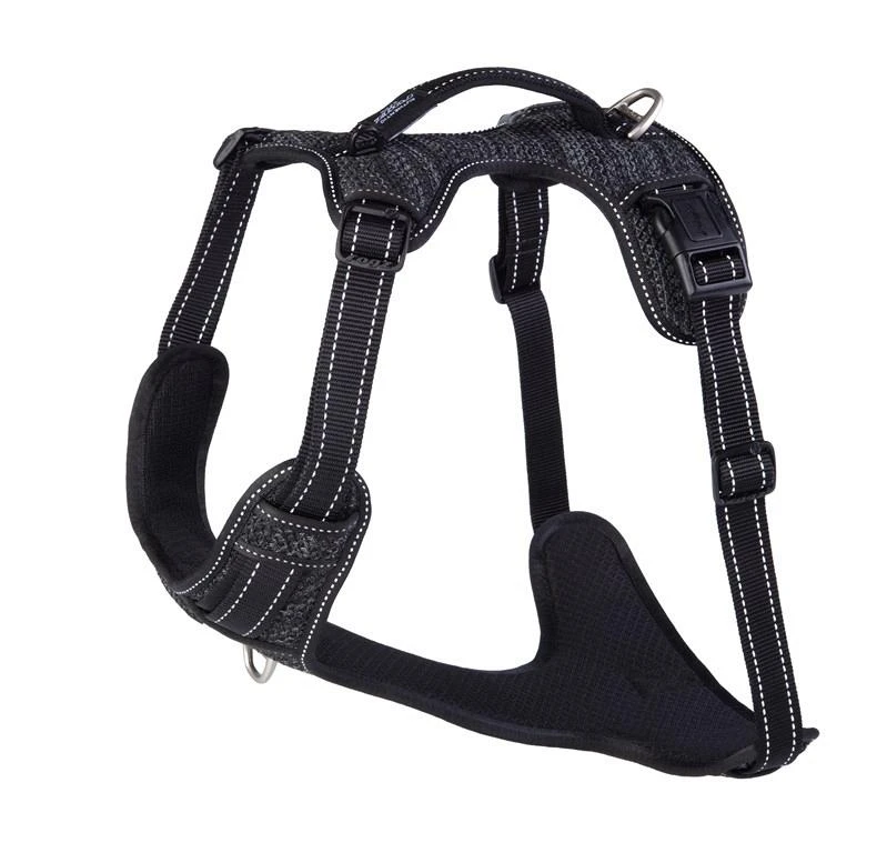 Met een gevoerde borst en rugplaat voor extra ondersteuning. Op de rugplaat zit een support handvat waarmee je je hond makkelijk ondersteuning kunt bieden bij het nemen van obstakels.