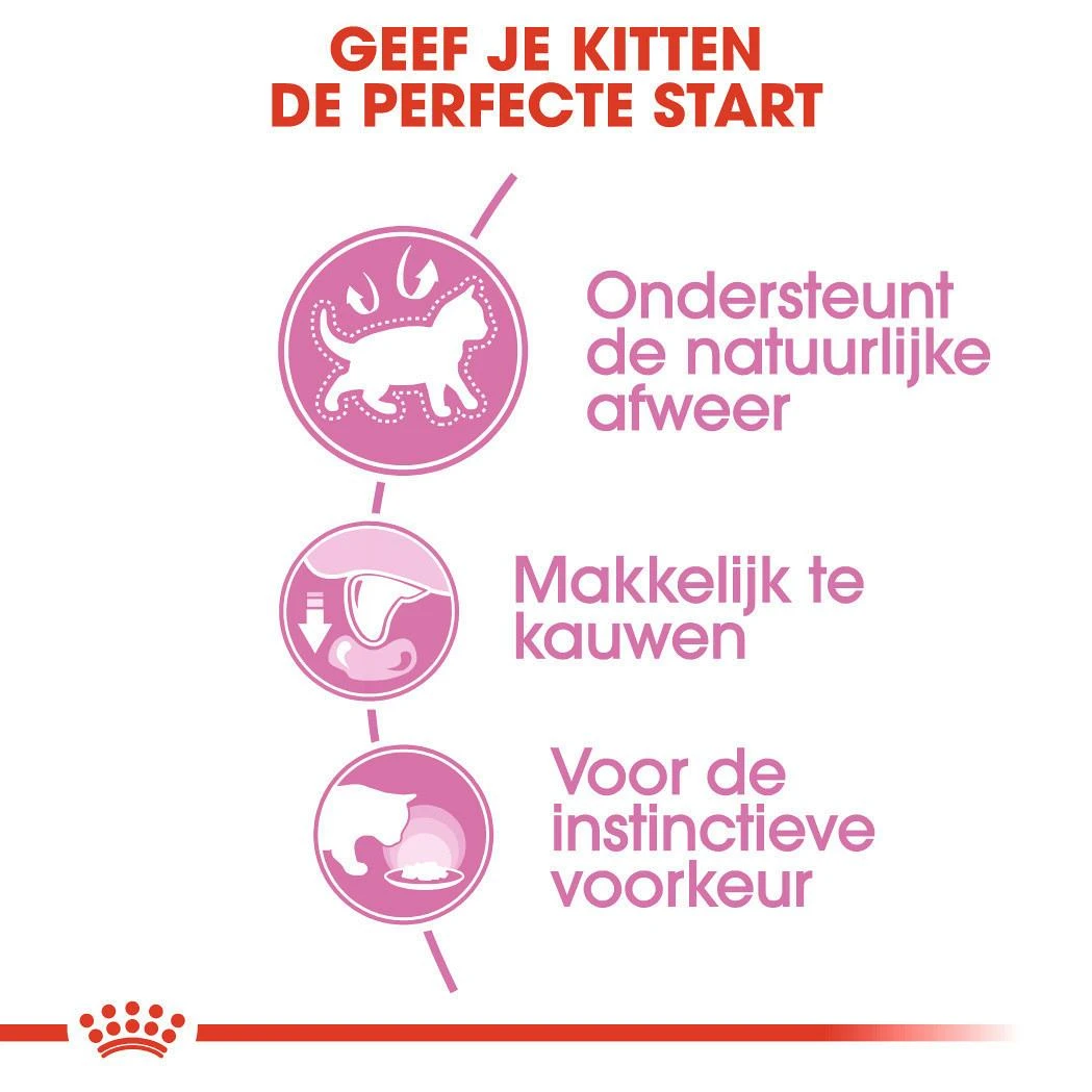 Royal Canin Kitten in jelly zijn maaltijdzakjes met vleesbrokjes in gelei voor kittens van 4 tot 12 maanden.