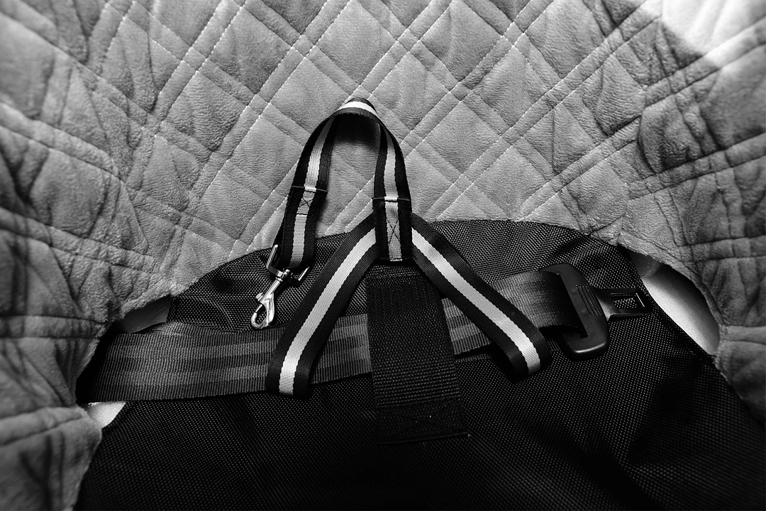 Het kussen is uitneembaar en heeft een schuimrubbervulling. De kussenhoezen en bekleding van het zitgedeelte zijn afneembaar en wasbaar. In het zitje zit een uitsparing voor een veiligheidsgordel voor de hond. De geïntegreerde riem voorkomt dat de hond eruit springt. Met een apart voorvak en een slipvaste bodem.