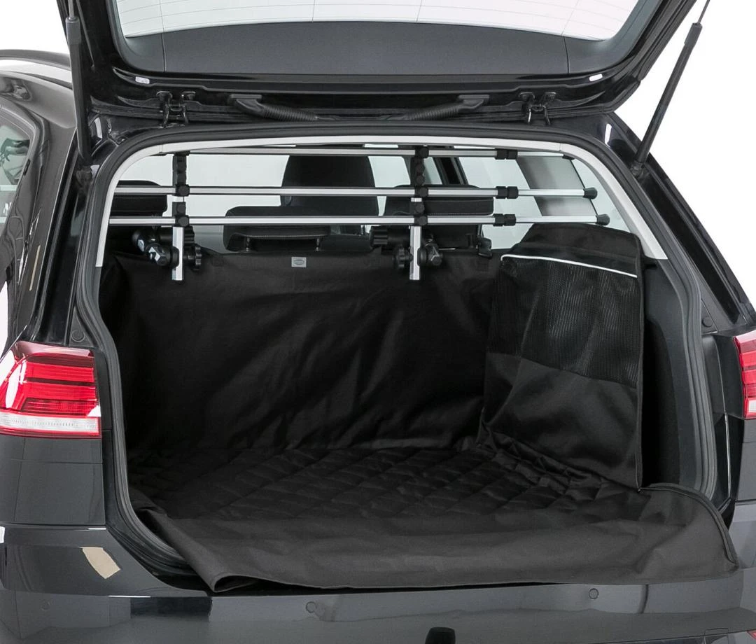 De TRIXIE kofferbakdeken heeft hoge zijkanten die de kofferbakbekleding beschermen. De deken wordt bevestigd aan de hoofdsteunen met gordels en aan de zijkanten met klittenband.