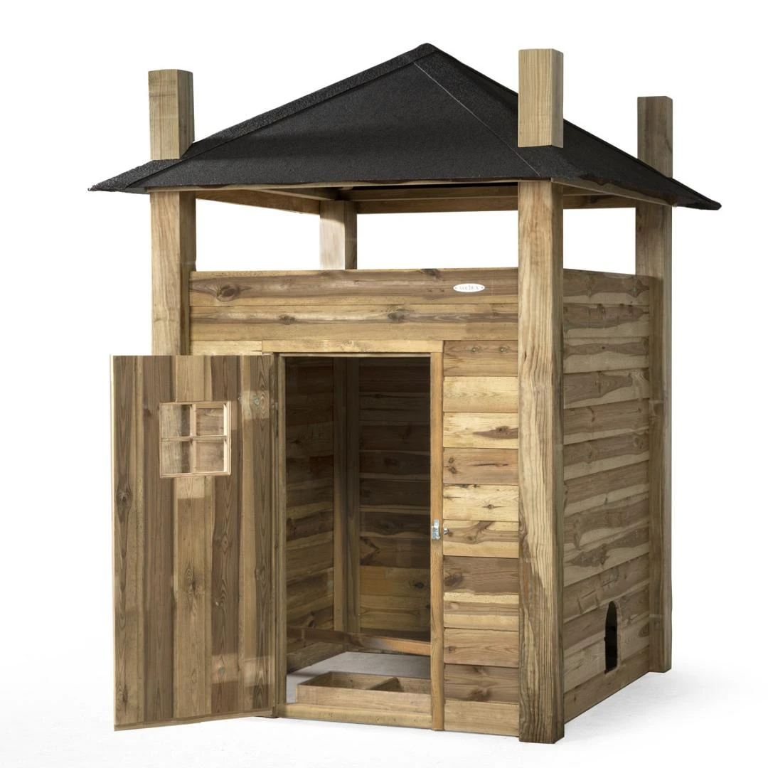 Voldux Kippen- of konijnenhok Hooiberg Loes is een prachtige hooiberg gemaakt van hoogwaardige materialen. Dit hok wordt handmatig geproduceerd en biedt een levensduur van 10 tot 15 jaar zonder onderhoud. Het is dus niet nodig dit verblijf jaarlijks te voorzien van een houtbehandeling. De hooiberg heeft een totale afmeting van 175 x 175 x 225 cm en springt direct in het oog met zijn klassieke kenmerken van een hooischuur.
